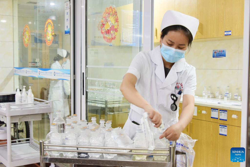 A nurse prepares medicine for patients at the inpatient department of a hospital in Changde, central China's Hunan Province, May 12, 2024. Sunday marked the 113th International Nurses Day. (Photo by Bai Yipu/Xinhua)