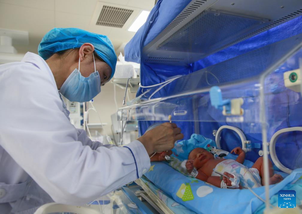 A nurse works at the neonatal intensive care unit (NICU) in a hospital in Taizhou City, east China's Jiangsu Province, May 12, 2024. Sunday marked the 113th International Nurses Day. (Photo by Tang Dehong/Xinhua)