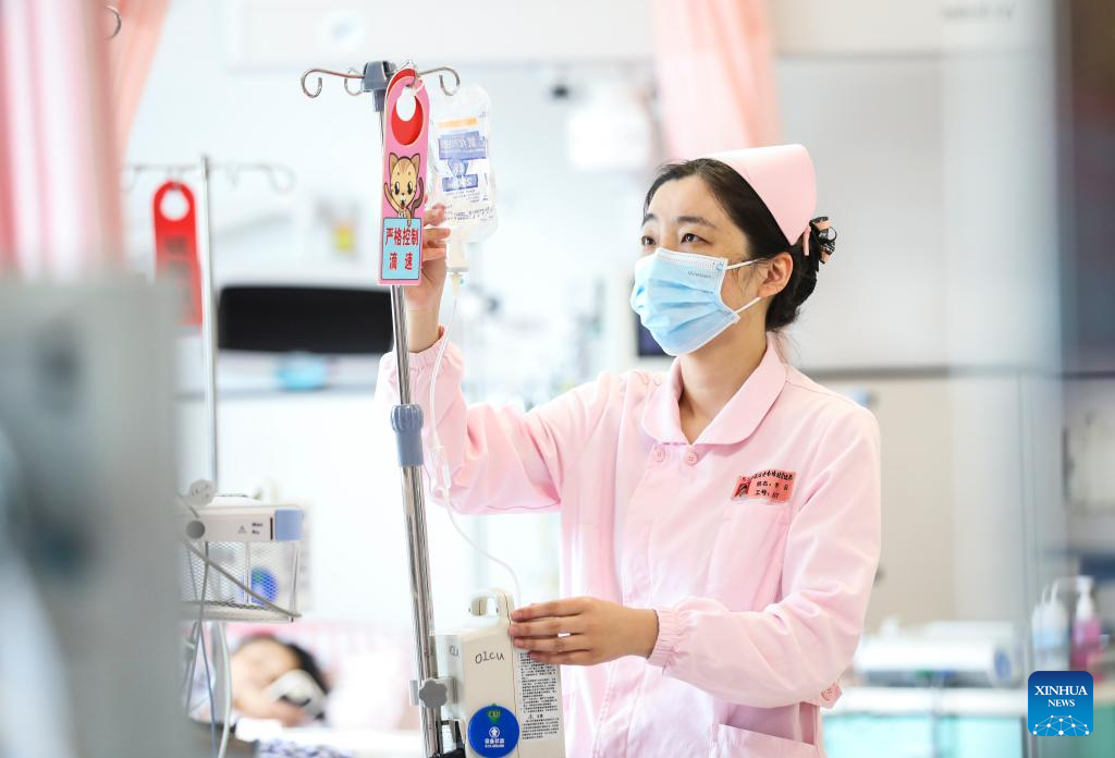 A nurse works at the intensive care unit (ICU) in a hospital in Qixia City, east China's Shandong Province, May 12, 2024. Sunday marked the 113th International Nurses Day. (Photo by Luan Qincheng/Xinhua)