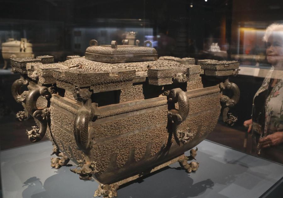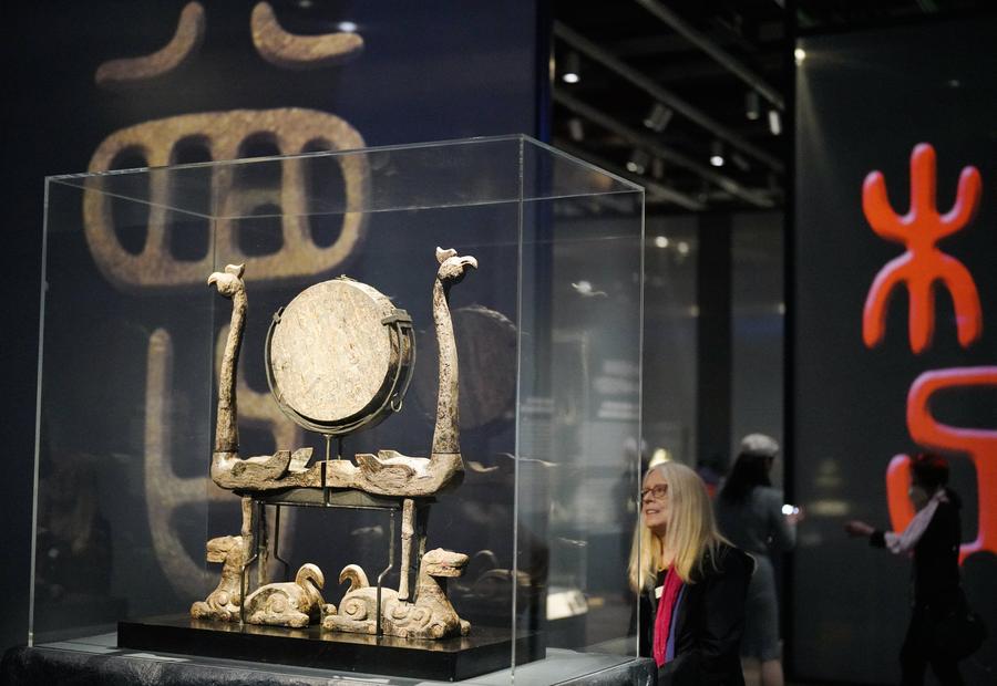 BEIJING, May 13 (Xinhua) -- From stately phoenixes, writhing serpents and horned spirits to fleshy jades, sonorous bells and swathes of wispy silk, the cultural relics from China's Bronze Age thrilled visitors at the Asian Art Museum in San Francisco.