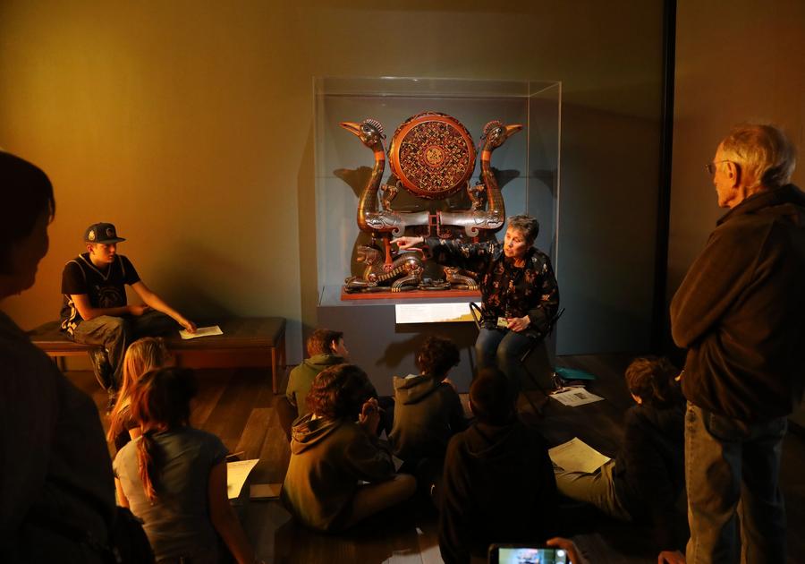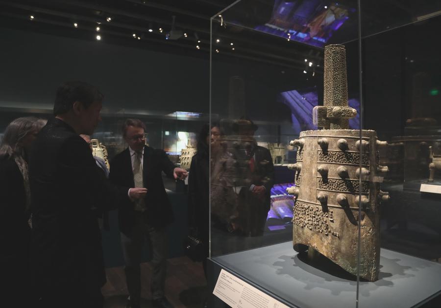 People visit a major exhibition of Chinese cultural relics from China's Bronze Age in San Francisco, California, the United States, April 19, 2024. (Xinhua/Wu Xiaoling)