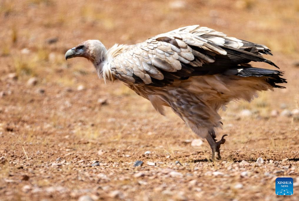 This photo taken on May 10, 2024 shows a bearded vulture at the Changtang National Nature Reserve in Nyima County of Nagqu City, southwest China's Xizang Autonomous Region. Dubbed the "paradise of wild animals," Changtang National Nature Reserve is home to over 30 kinds of wild animals listed on China's national-level protection catalogue, including Tibetan antelopes and wild yaks. (Xinhua/Jiang Fan)