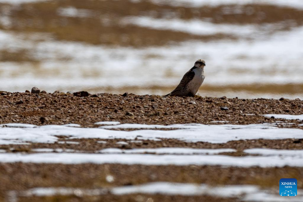 This photo taken on May 9, 2024 shows a peregrine falcon at the Changtang National Nature Reserve in Nyima County of Nagqu City, southwest China's Xizang Autonomous Region. Dubbed the "paradise of wild animals," Changtang National Nature Reserve is home to over 30 kinds of wild animals listed on China's national-level protection catalogue, including Tibetan antelopes and wild yaks. (Xinhua/Jiang Fan)