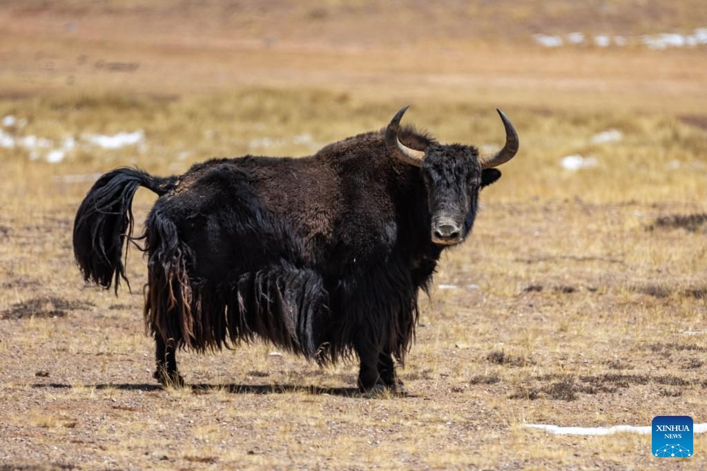 This photo taken on May 9, 2024 shows a wild yak at the Changtang National Nature Reserve in Nyima County of Nagqu City, southwest China's Xizang Autonomous Region. Dubbed the "paradise of wild animals," Changtang National Nature Reserve is home to over 30 kinds of wild animals listed on China's national-level protection catalogue, including Tibetan antelopes and wild yaks. (Xinhua/Jiang Fan)