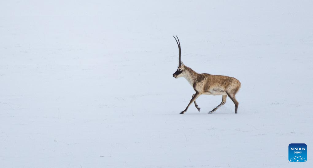 This photo taken on May 8, 2024 shows a Tibetan antelope at the Changtang National Nature Reserve in Nyima County of Nagqu City, southwest China's Xizang Autonomous Region. Dubbed the "paradise of wild animals," Changtang National Nature Reserve is home to over 30 kinds of wild animals listed on China's national-level protection catalogue, including Tibetan antelopes and wild yaks. (Xinhua/Tenzin Nyida)