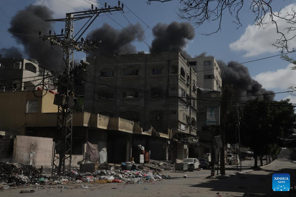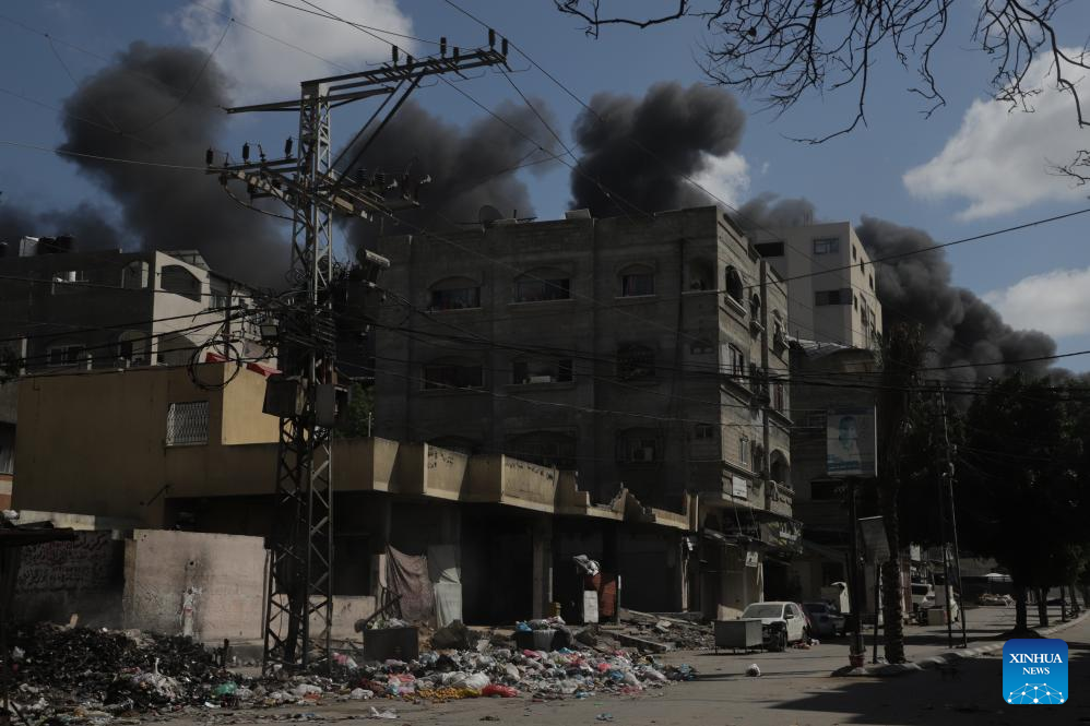 Smoke rises following Israeli strikes in Jabaliya refugee camp, northern Gaza Strip, on May 13, 2024. (Photo by Abdul Rahman Salama/Xinhua)