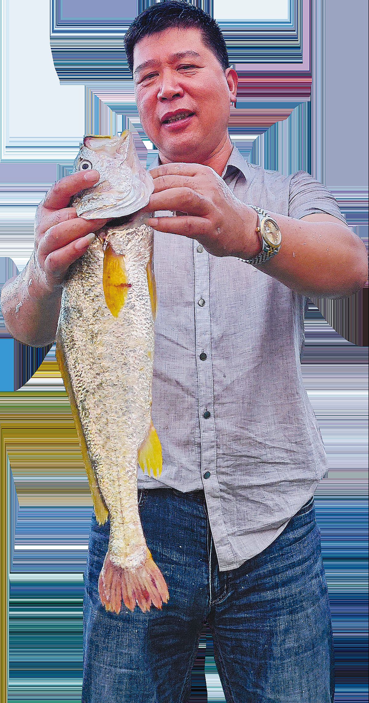 A large yellow croaker cultivated in Ningde is displayed. CHINA DAILY
