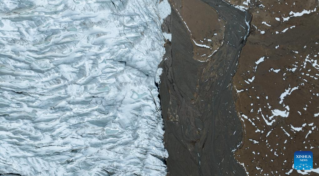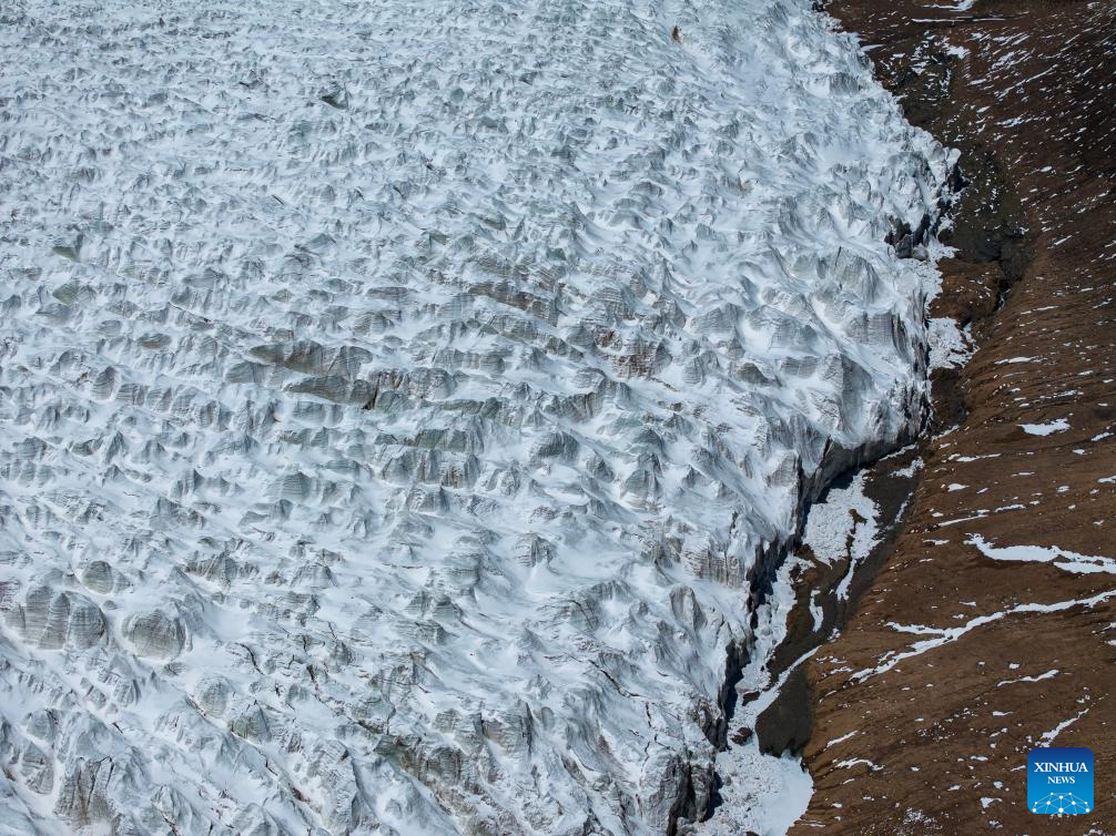 An aerial drone photo taken on May 11, 2024 shows a view of the Zangser Kangri Glacier at the Changtang National Nature Reserve, southwest China's Xizang Autonomous Region. (Xinhua/Tenzin Nyida)