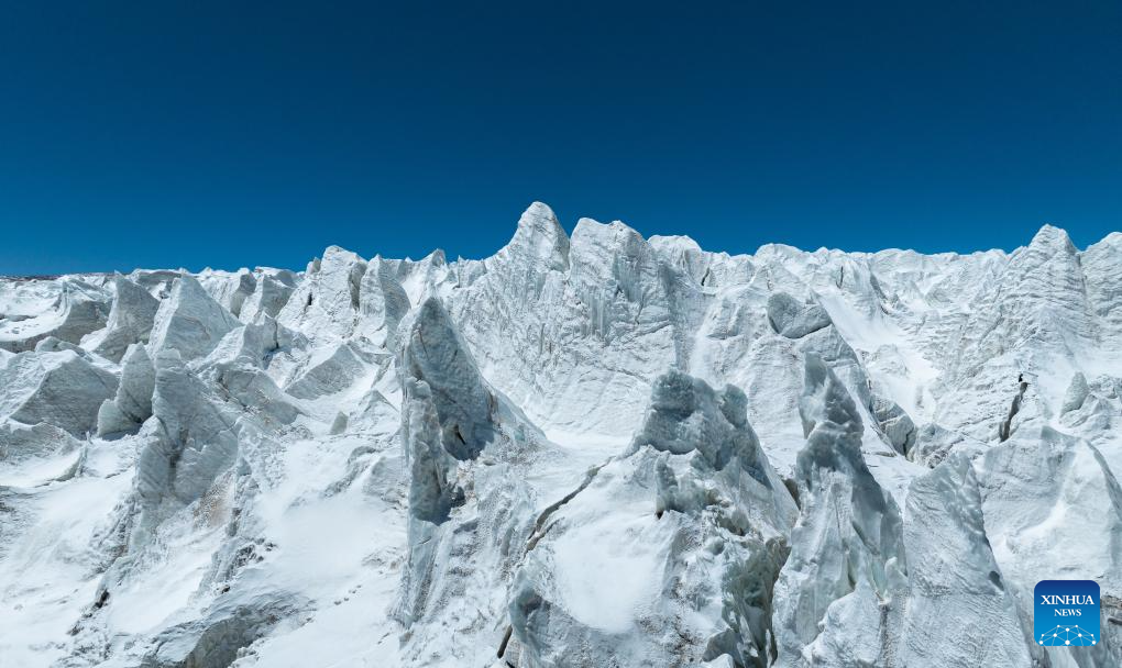 An aerial drone photo taken on May 11, 2024 shows a view of the Zangser Kangri Glacier at the Changtang National Nature Reserve, southwest China's Xizang Autonomous Region. (Xinhua/Jiang Fan)