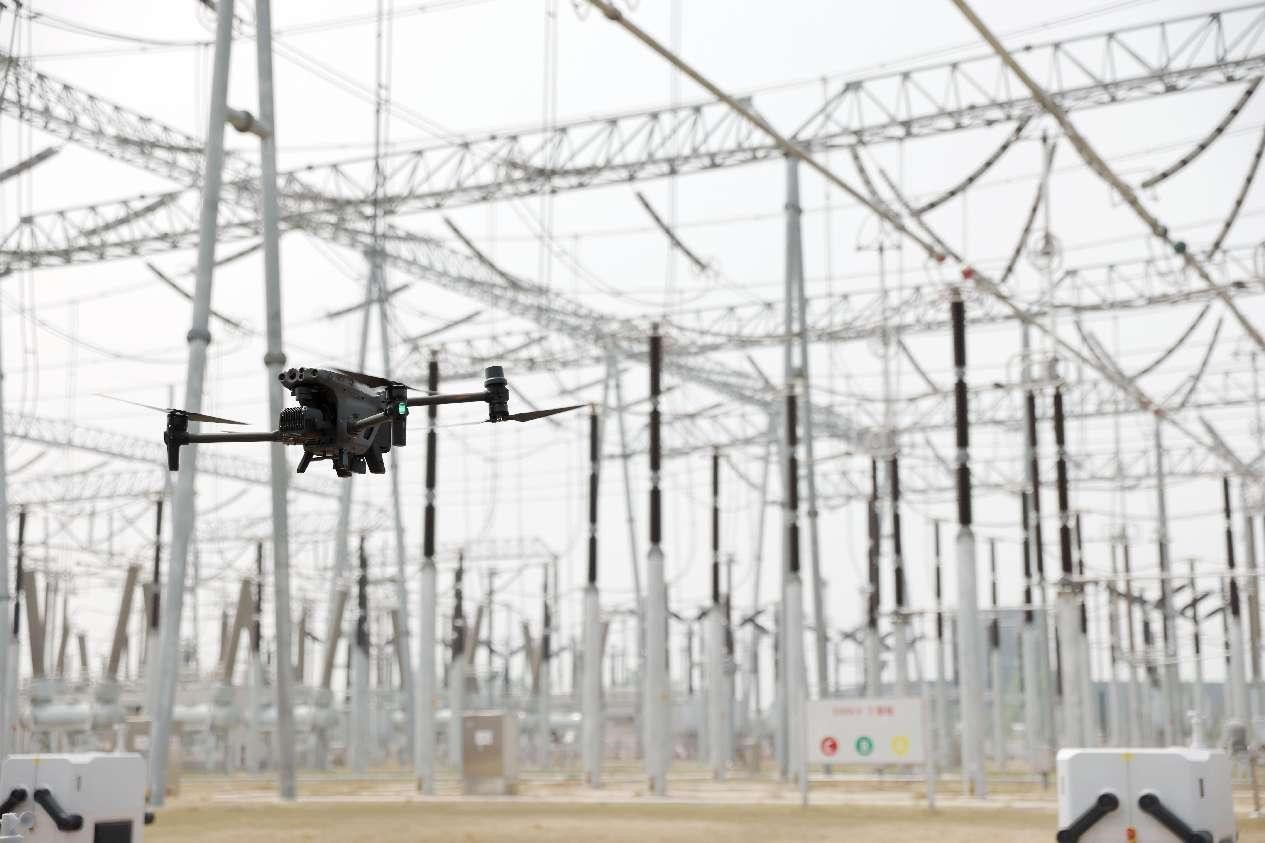 A drone inspects a power transformer at a 500-KV substation in Bozhou, east China's Anhui province. (People's Daily Online/Lou Yanxu)