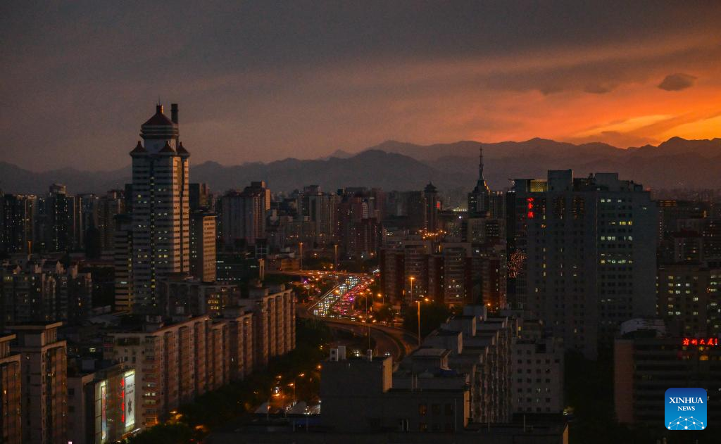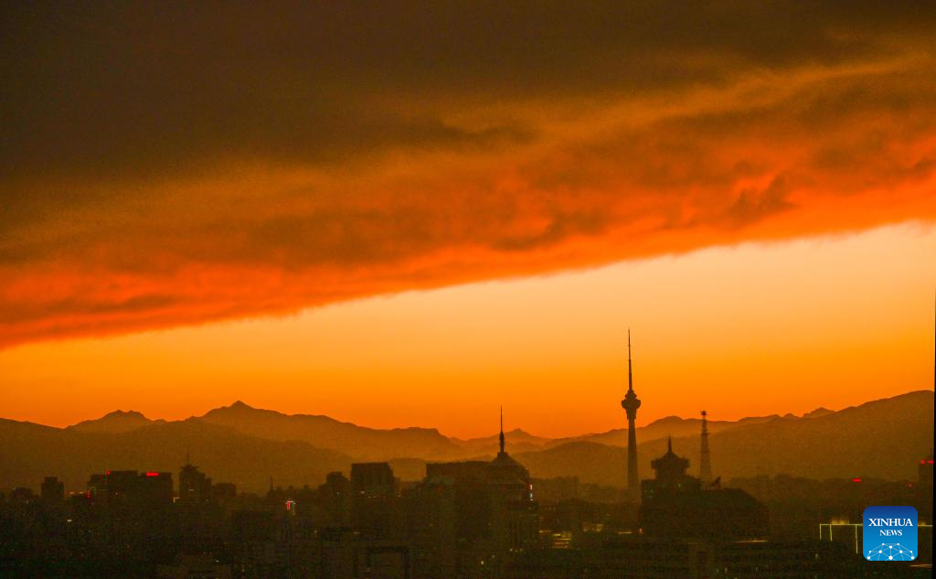This photo taken on May 14, 2024 shows the sunset glow over Beijing, capital of China. (Xinhua/Li He)