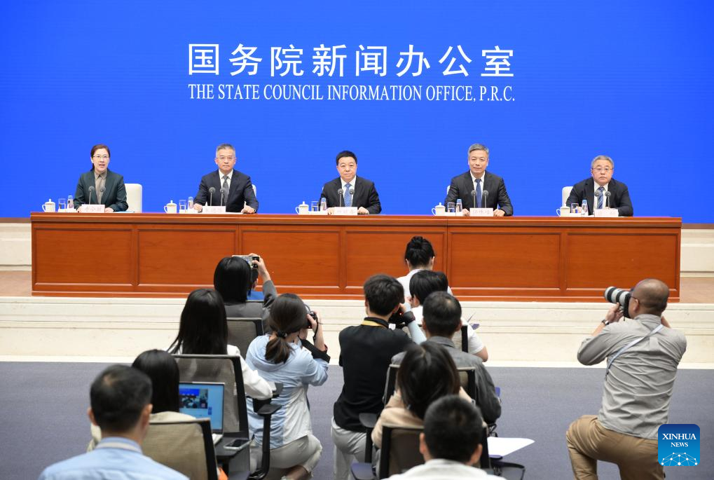 Provincial officials of east China's Jiangxi Province attend a press briefing on continuing Jiangxi's revolutionary glories, striving ahead in promoting high-quality development of its old revolutionary base areas, in Beijing, capital of China, May 16, 2024.(Xinhua/Li He)