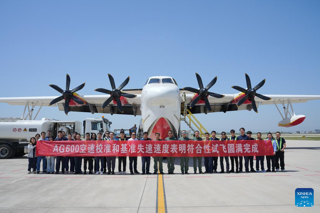 On May 13, the AG600 completed the last flight of the compliance flight test subjects for its in-flight airspeed calibration and standard stall speed at a test flight base for civil aircraft in Pucheng in northwest China's Shaanxi Province.