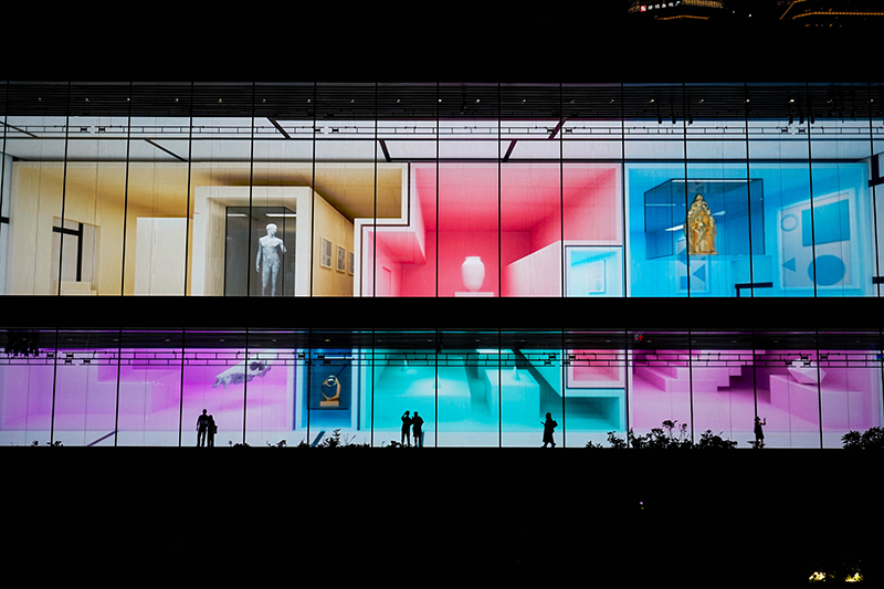 Photo taken on July 13, 2023 shows a light show staged in the Museum of Art Pudong in east China’s Shanghai. (Xinhua/Li Xinyi)