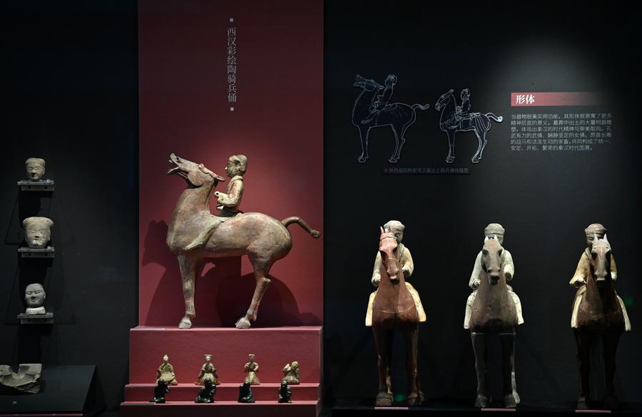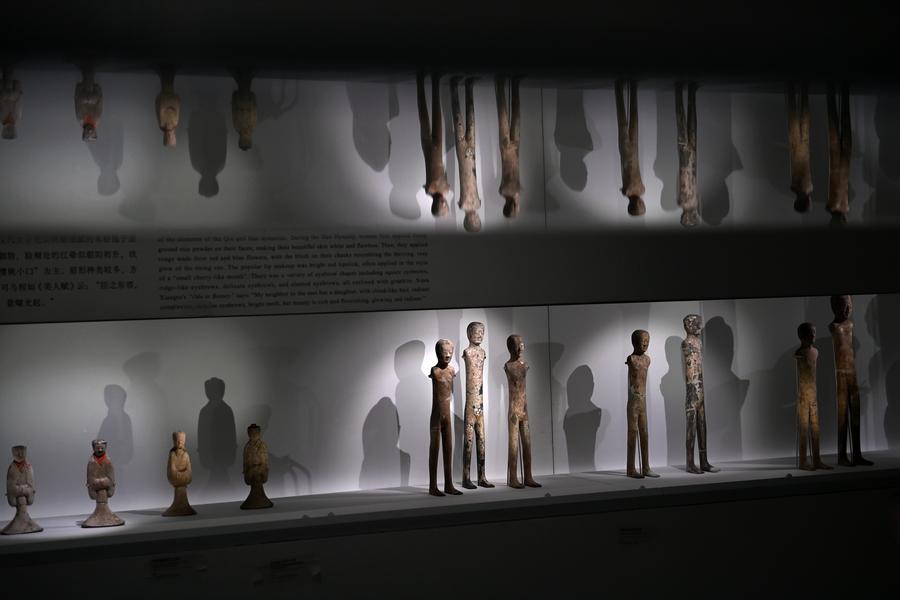 Pottery figurines are displayed at the Qin Han Museum of the Shaanxi History Museum in Xi'an, capital of northwest China's Shaanxi Province, May 6, 2024. (Xinhua/Li Yibo)