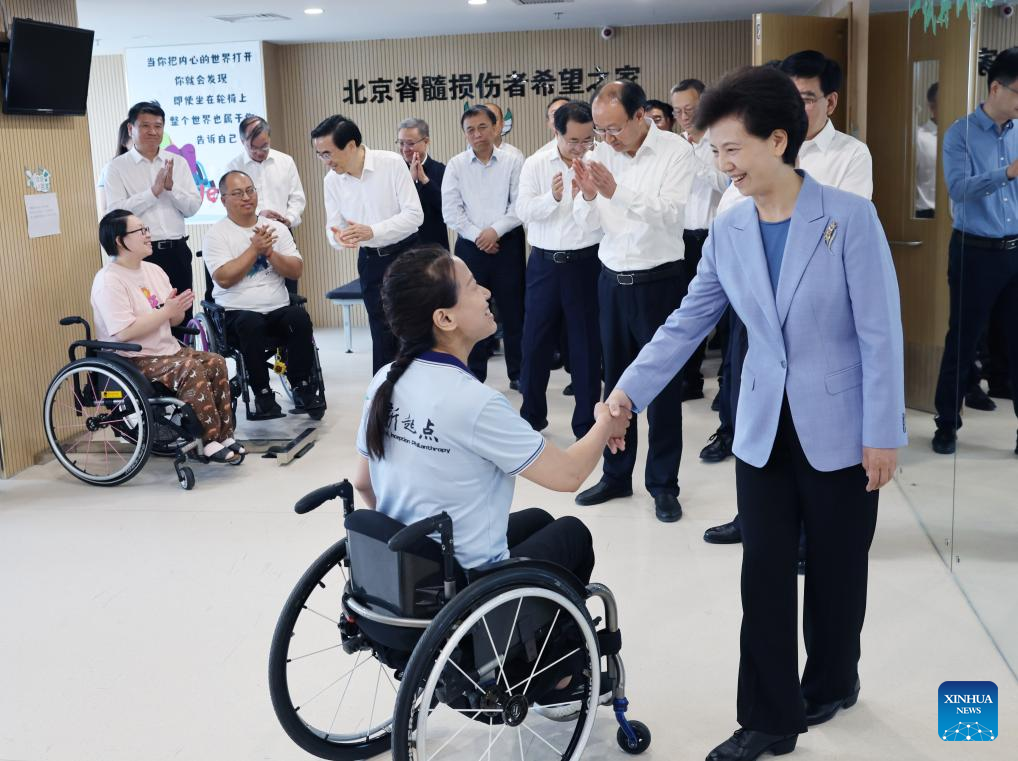 Chinese State Councilor Shen Yiqin, also director of the State Council's working committee for disabled people, attends an activity on helping the disabled in Beijing, capital of China, May 18, 2024. (Xinhua/Yao Dawei)