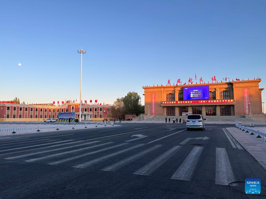 This photo taken on Nov. 26, 2023 shows a road heading towards the Dongfeng Space City in northwest China. (Xinhua/Jia Zhao)
