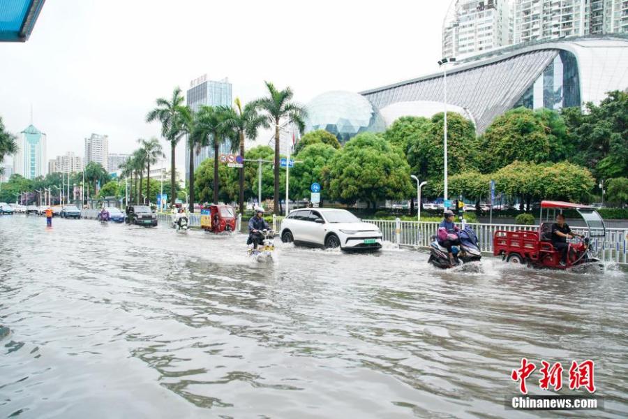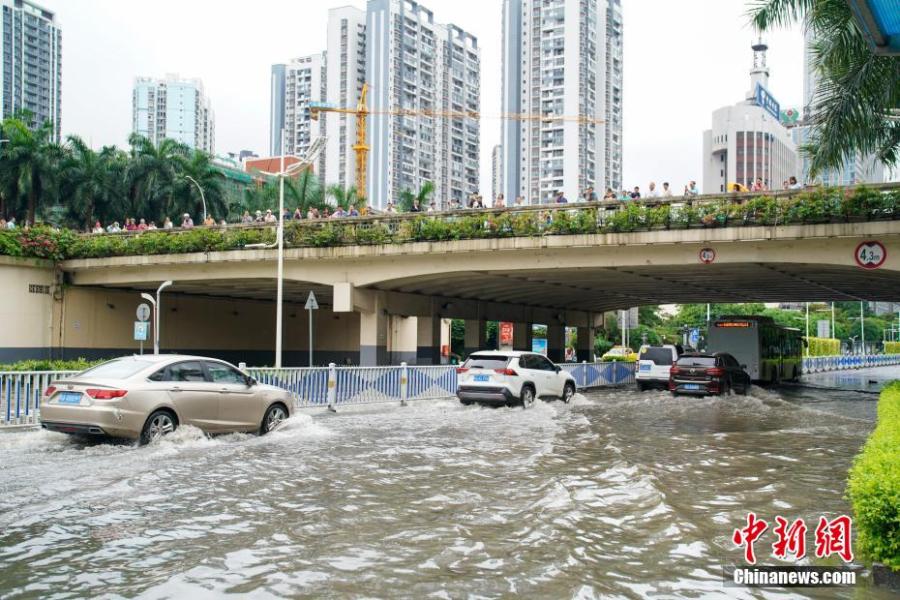 Cars run on a waterlogged street in Nanning, south China's Guangxi Zhuang Autonomous Region, May 19, 2024. (Photo: China News Service/Chen Guanyan)