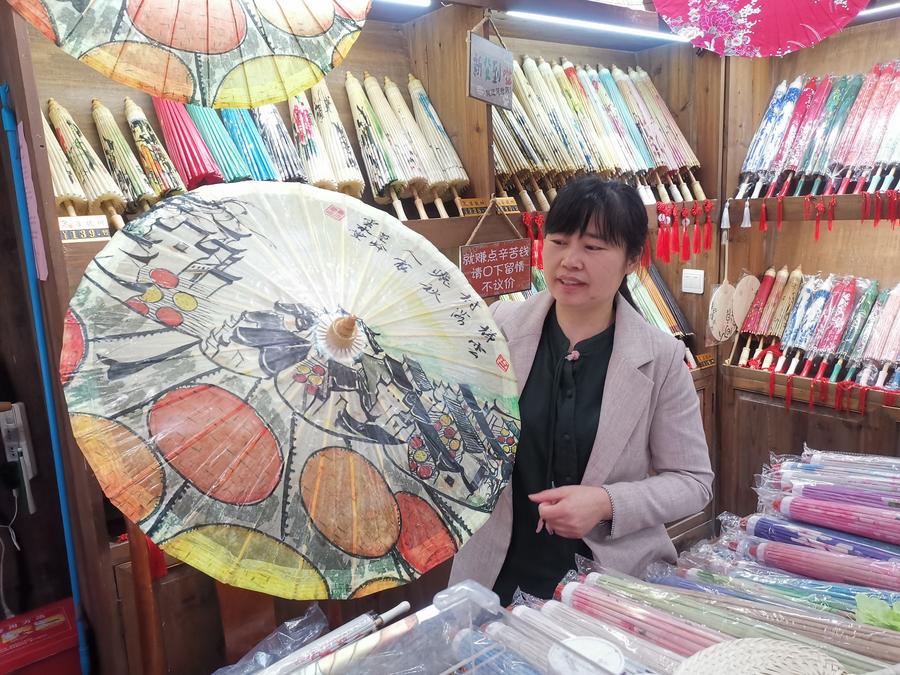 Cao Wenjuan, the proprietor of a local umbrella shop, frequently showcases the art of Jialu umbrella-making in her establishment, which is not far from a KFC restaurant. According to Cao, her shop is able to sell over a hundred paper umbrellas per day during the peak season, generating income well beyond what she earned when she worked in the city of Wenzhou in east China's Zhejiang Province.