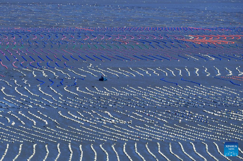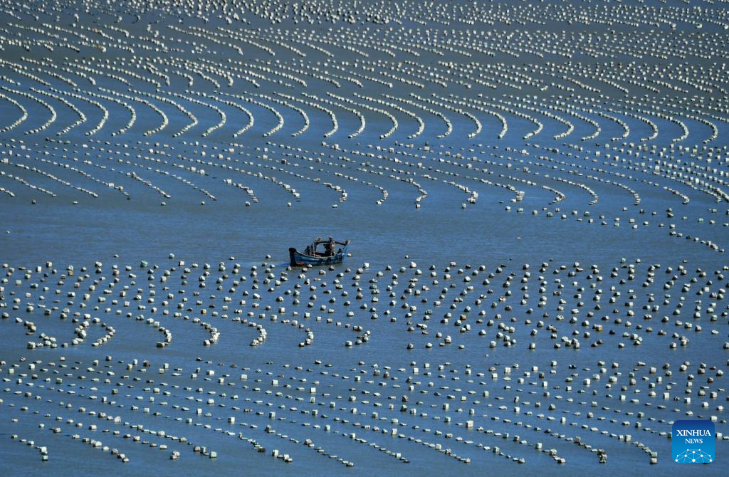 This photo taken on Nov. 10, 2020 shows a mariculture zone near Qida Village of Lianjiang County, southeast China's Fujian Province. (Xinhua/Wei Peiquan)