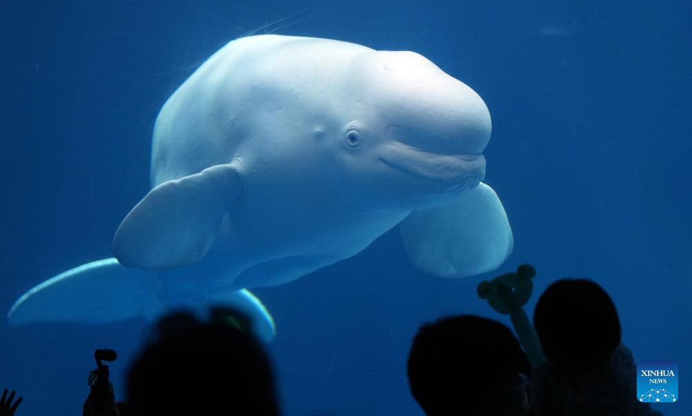Tourists view a white whale at Sunasia Ocean World in Dalian, northeast China's Liaoning Province, May 22, 2024. Various scenic spots in Dalian see surging tourists as the coastal city reaches the peak of its tourism season. The sites as zoos and aquariums even the natural places where tourists can see wild animals are among the increasingly popular destinations for the tourists. (Xinhua/Zhang Lei)