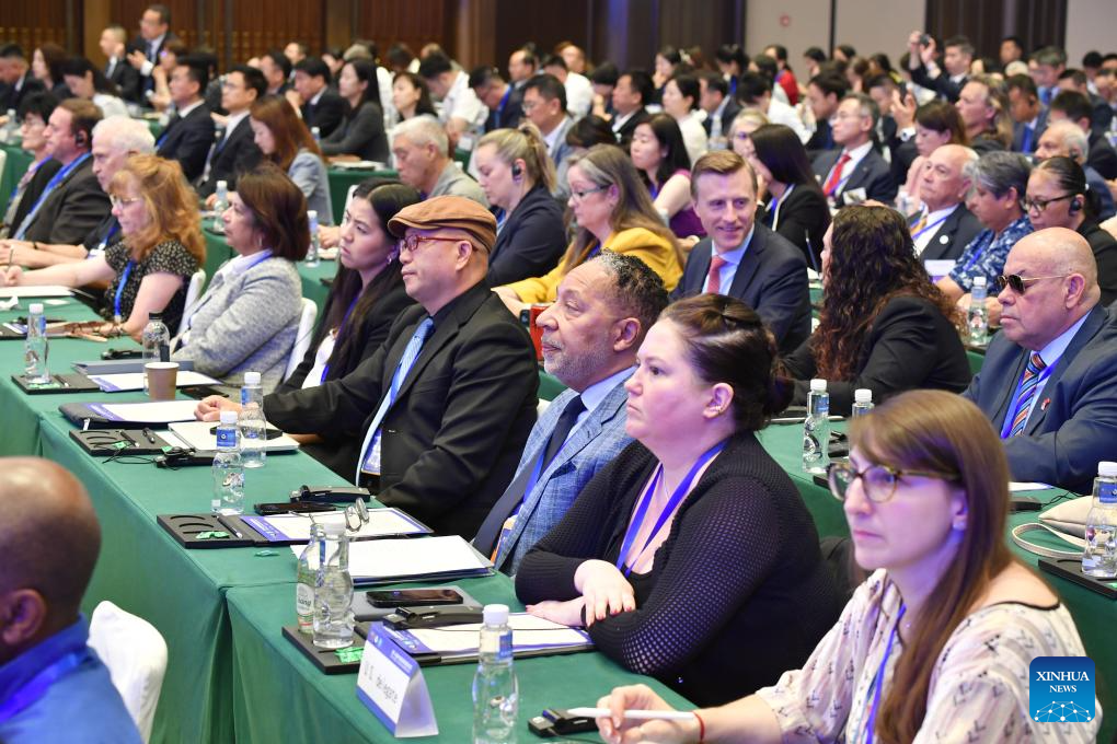 This photo taken on May 22, 2024 shows a scene during the 14th China-U.S. Tourism Leadership Summit held in Xi'an, northwest China's Shaanxi Province. The summit opened in Xi'an on Wednesday, with the theme of "Expanding China-U.S. Travel and Tourism and People-to-people Exchanges." It is co-hosted by the Ministry of Culture and Tourism of China, the People's Government of Shaanxi Province, the U.S. Department of Commerce, and Brand USA. (Xinhua/Shao Rui)