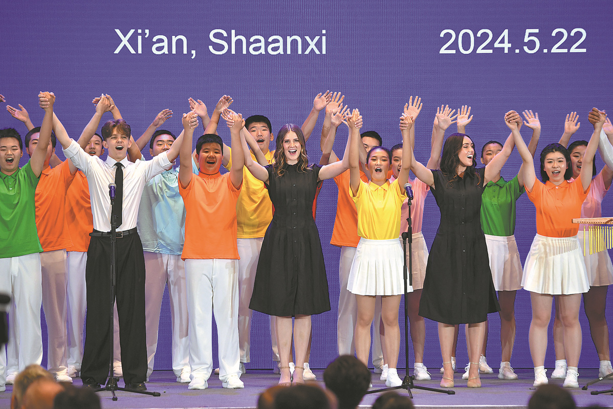 Students from China and the United States perform at the opening ceremony of the 14th China-US Tourism Leadership Summit, which opened in Xi'an, Shaanxi province, on Wednesday. SHAO RUI/XINHUA