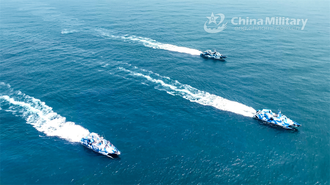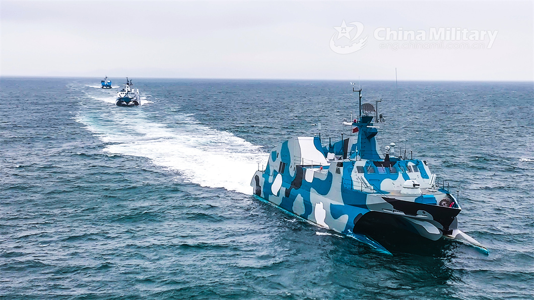 Missile boats attached to a missile boat group with the navy under the PLA Southern Theater Command sail in formation during an assessment of the troops' capability to carry out diversified tasks in mid-April, 2024. (eng.chinamil.com.cn/Photo by Wan Songtao)