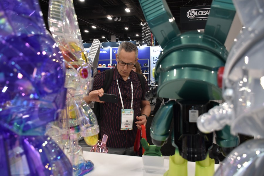 People visit the exhibition area of Chinese company ROBBiART at Licensing Expo 2024 in Las Vegas, the United States, on May 22, 2024. (Photo by Zeng Hui/Xinhua)