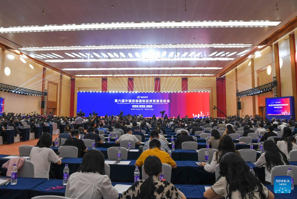 People attend the opening ceremony of the Sixth Western China International Fair for Investment and Trade in southwest China's Chongqing Municipality, May 23, 2024. With the theme of "New Western China, New Manufacturing, New Services", the fair is held from May 23 to 26 in Chongqing. (Xinhua/Wang Quanchao)