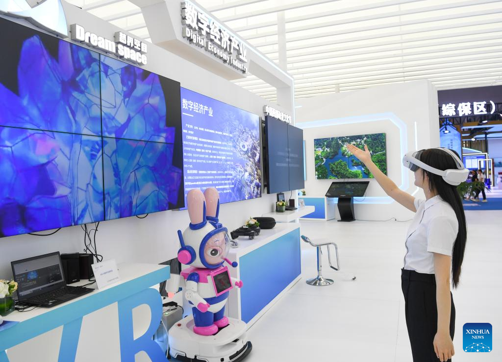 A visitor uses a VR device during the Sixth Western China International Fair for Investment and Trade in Chongqing International Expo Center in southwest China's Chongqing Municipality, May 23, 2024. With the theme of "New Western China, New Manufacturing, New Services", the fair is held from May 23 to 26 in Chongqing. (Xinhua/Wang Quanchao)