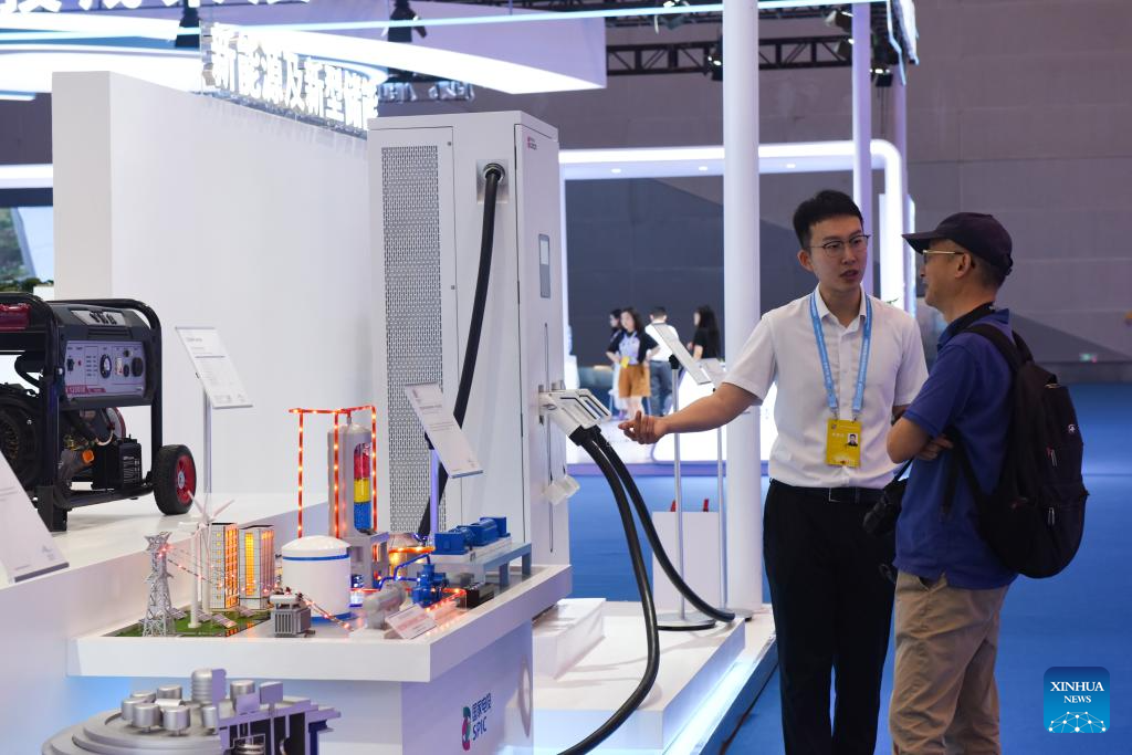A visitor listens to the introduction of a device during the Sixth Western China International Fair for Investment and Trade in Chongqing International Expo Center in southwest China's Chongqing Municipality, May 23, 2024. With the theme of "New Western China, New Manufacturing, New Services", the fair is held from May 23 to 26 in Chongqing. (Xinhua/Zhang Ziyu)