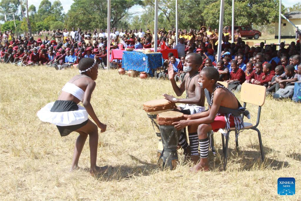 A girl performs a traditional Zimbabwean dance during a China-Zimbabwe cultural exchange event in Goromonzi, a rural community in the East Mashonaland Province, Zimbabwe, on May 23, 2024. Chinese firm Prospect Lithium Zimbabwe (PLZ), together with the Confucius Institute at the University of Zimbabwe, held a cultural exchange event Thursday to mark Africa Day, which is commemorated annually on May 25. (Xinhua/Tafara Mugwara)