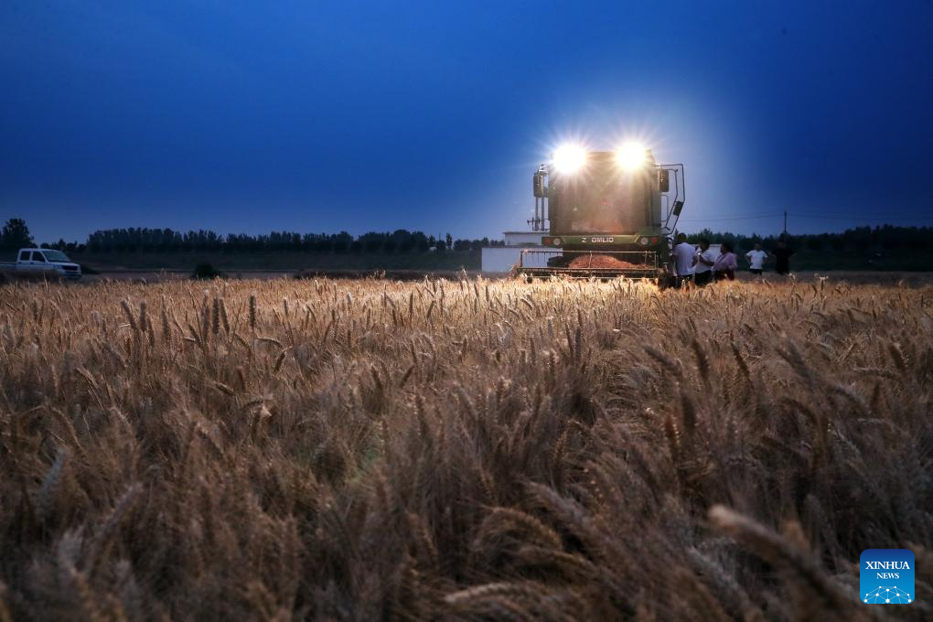 Farmers harvest wheat in the fields in Wulou Village in Shangshui County, Zhoukou City of central China's Henan Province, May 25, 2024. (Photo by Gao Jianzhong/Xinhua)