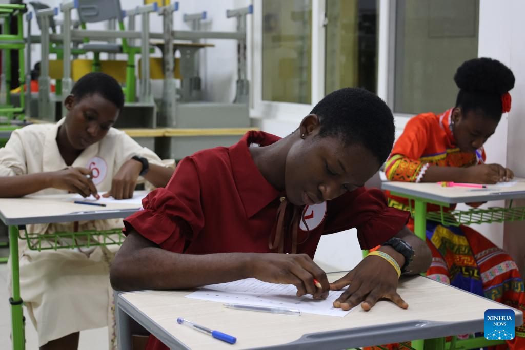 Contestants participate in a written exam in the national qualification for the 17th "Chinese Bridge," a Chinese language competition for foreign secondary school students, in Accra, Ghana, on May 24, 2024. (Photo by Seth/Xinhua)