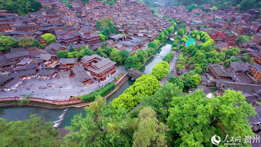 An aerial drone photo shows an overall view of Xijiang Qianhu Miao Village, in Qiandongnan Miao and Dong Autonomous Prefecture, southwest China’s Guizhou Province. (People’s Daily Online/Tu Min)