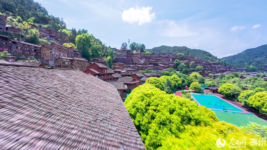 An aerial drone photo shows an overall view of Xijiang Qianhu Miao Village, in Qiandongnan Miao and Dong Autonomous Prefecture, southwest China’s Guizhou Province. (People’s Daily Online/Tu Min)