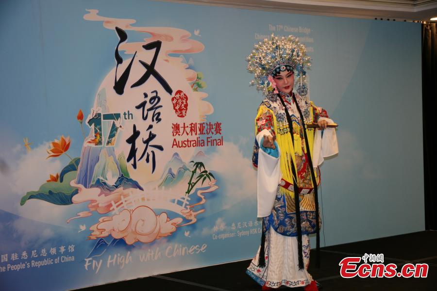 A contestant performs Peking Opera during the final round of the 17th "Chinese Bridge" Chinese Proficiency Competition for foreign high schools in Sydney, Australia, May 26, 2024. (Photo: China News Service/Gu Shihong)