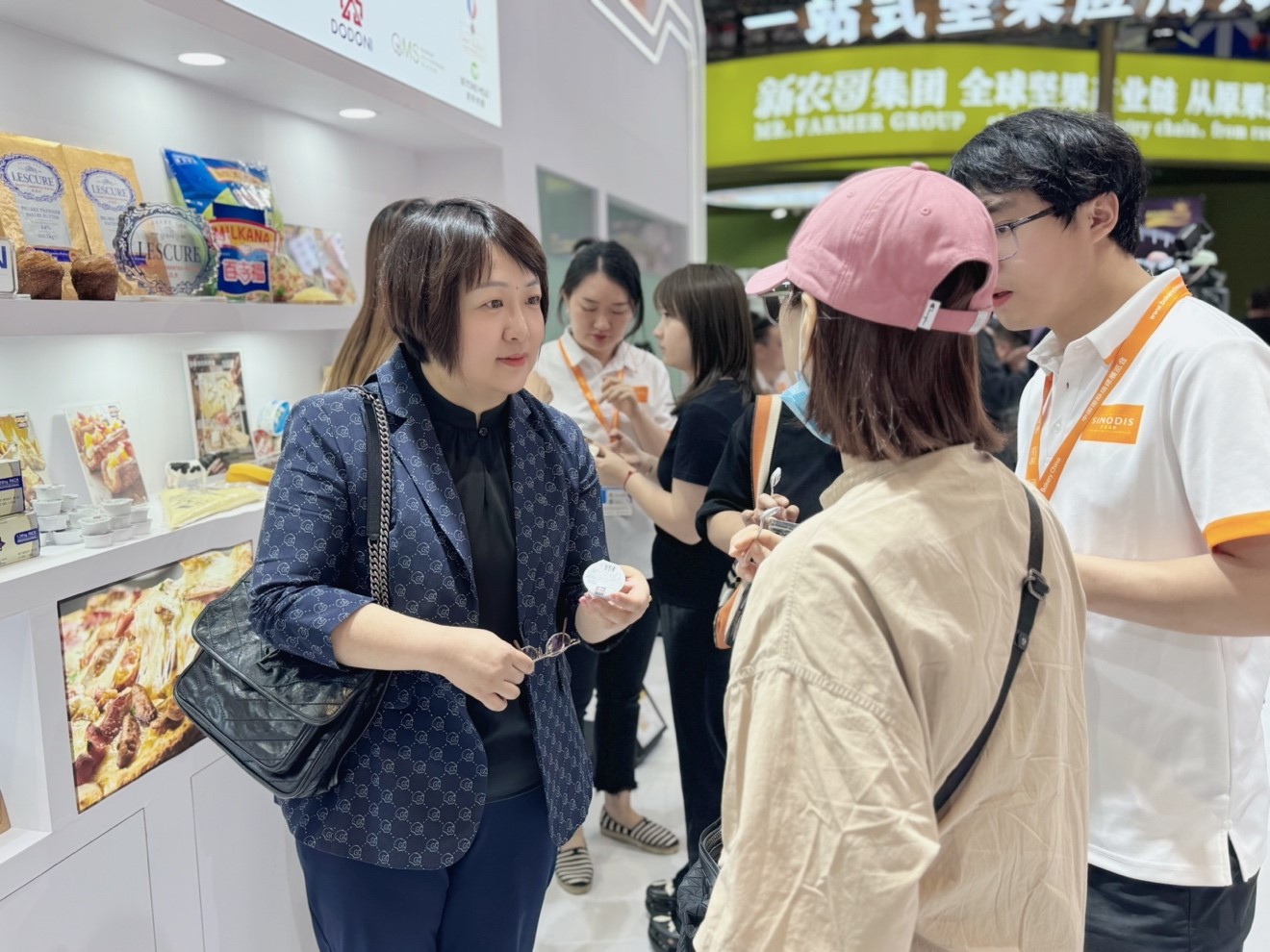 Cheese products displayed by Savencia Cheese Group. (Qian Haifen/People's Daily)