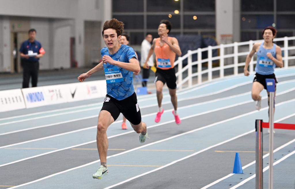 Alixr Omar of Xinjiang competes during the men's 400m final at the Chinese National Indoor Athletics Championships 2024 in north China's Tianjin Municipality, March 31, 2024. (Xinhua/Li Ran)
