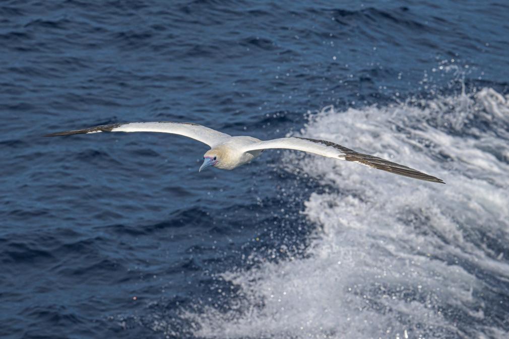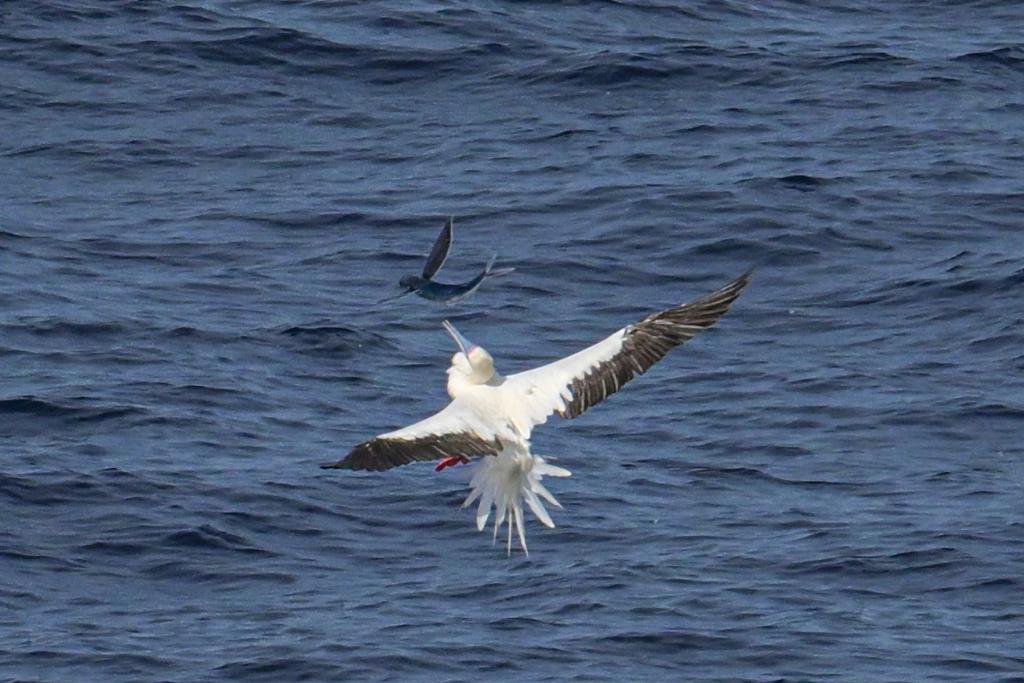 Among the many predators of the flying fish, the red-footed booby stands out as a particularly skilled hunter. Recognized as a national second-class protected wild animal, the red-footed booby has earned the nickname "hunter of flying fish." These birds are often seen accompanying ships and preying on flying fish that are startled by the ships.