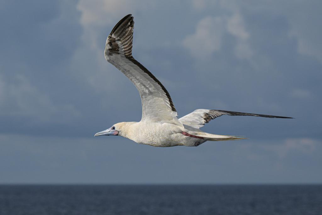 A red-footed booby flies over the South China Sea, May 24, 2024. (Xinhua/Pu Xiaoxu)