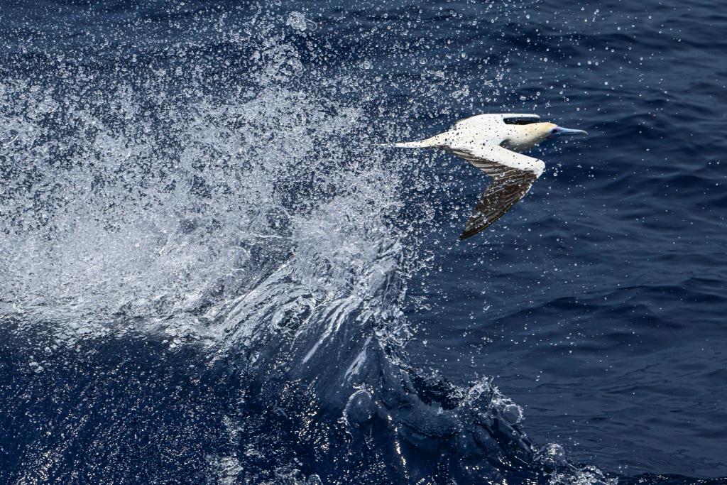 A red-footed booby catches a flying fish over the South China Sea, May 24, 2024. (Xinhua/Pu Xiaoxu)