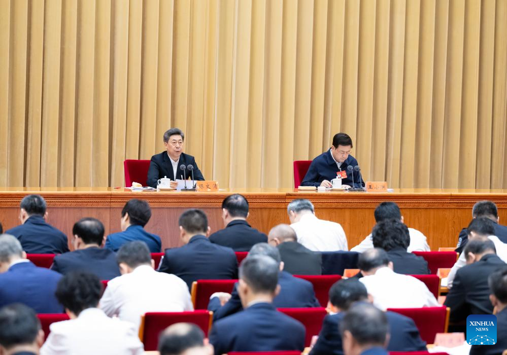 Chen Wenqing, a member of the Political Bureau of the Communist Party of China (CPC) Central Committee and head of the Commission for Political and Legal Affairs of the CPC Central Committee, speaks at a national conference on public security work in Beijing, capital of China, May 29, 2024. (Xinhua/Zhai Jianlan)