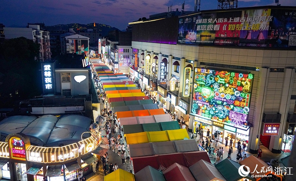 Photo shows an overall view of the Wulin night market in Hangzhou, east China’s Zhejiang Province, May 24, 2024. (People’s Daily Online/Zhang Yongtao)