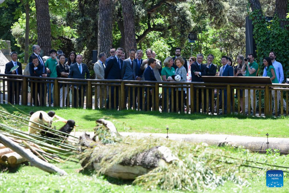 MADRID, May 30 (Xinhua) -- Visitors to Spain's Madrid Zoo Aquarium were introduced Thursday to a giant panda couple from China. The new arrivals were welcomed at an official ceremony attended by authorities and experts from both countries.