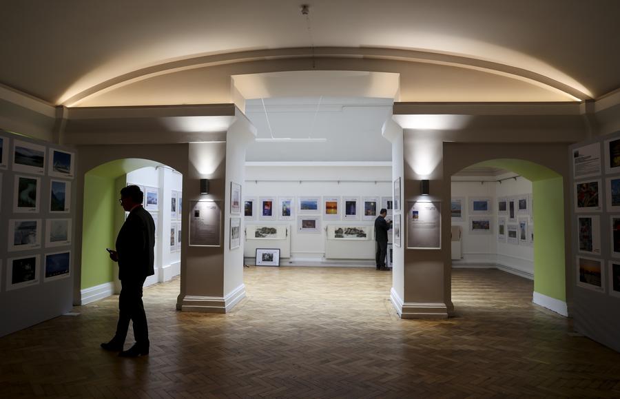 People look at photographs at a UK-China arts event in London, Britain, on May 30, 2024. An arts event highlighting the cultures along the Yellow River and Thames River, two iconic rivers in China and the United Kingdom (UK) in respective, began on Friday in central London. (Xinhua/Han Yan)