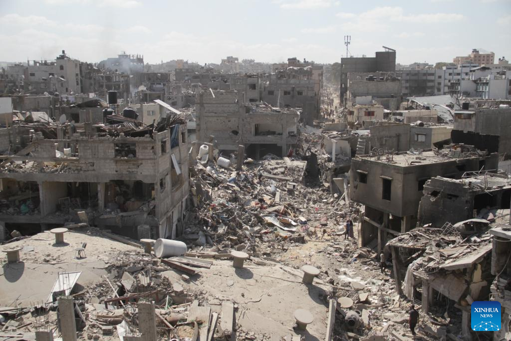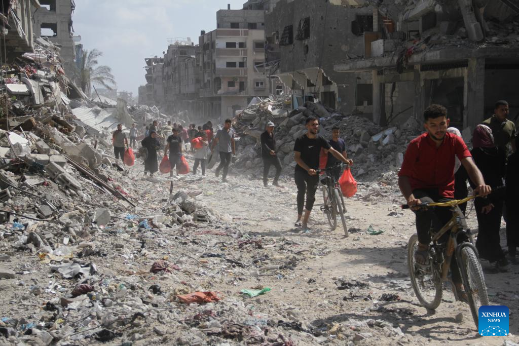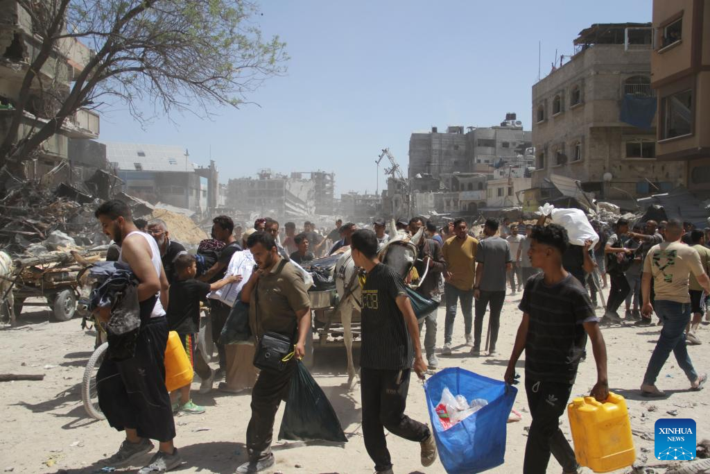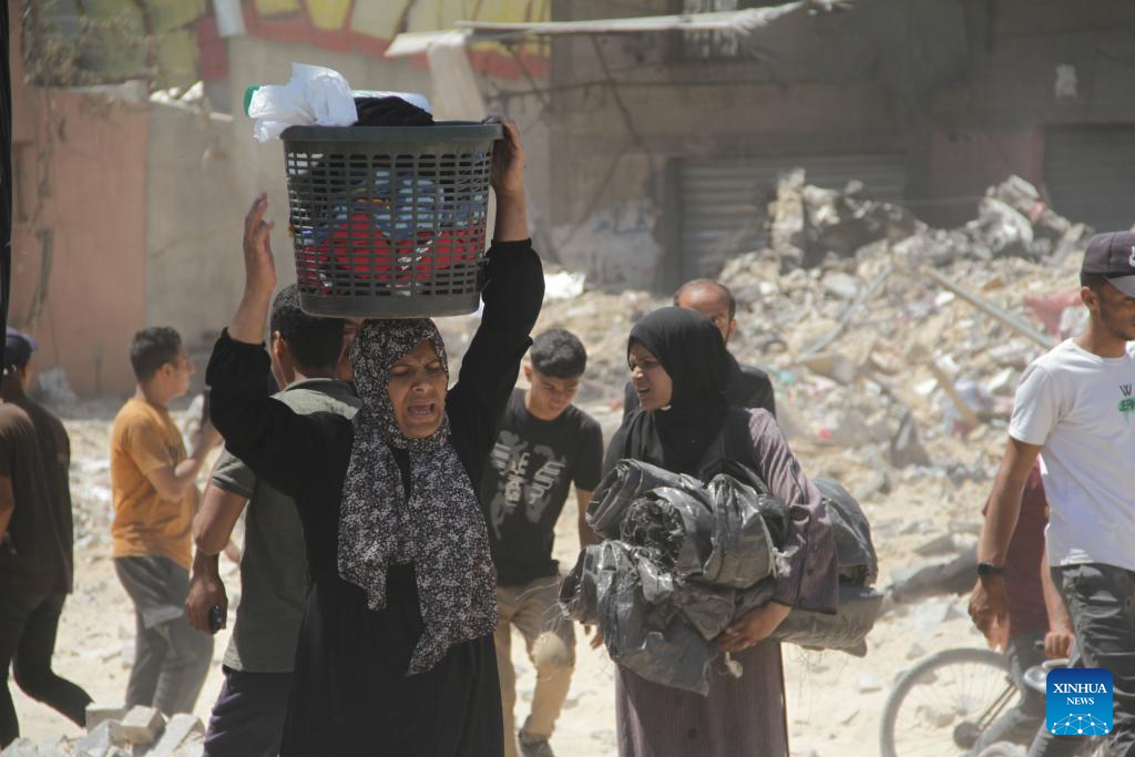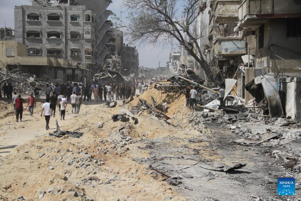 Displaced Palestinians are seen in Jabalia, northern Gaza Strip, on May 30, 2024. Local sources reported that Israeli troops have withdrawn from the western and southern regions of Jabalia in northern Gaza, while some soldiers remain in the northern and eastern areas of the city. In a statement, the emergency committee in the northern Gaza Strip urged residents to "be patient and not return to the northern areas of the Gaza Strip at this time." The statement warned that the Israeli army left a large number of drones that continue to fire on residents. (Photo by Mahmoud Zaki/Xinhua)