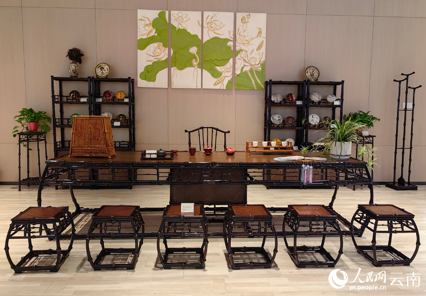 Photo shows bamboo furniture and bamboo handicrafts in Daguan county, Zhaotong city, southwest China's Yunnan Province. (People's Daily Online/Fu Hao)