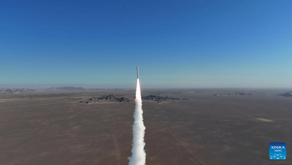 The CERES-1 commercial carrier rocket carrying a group of five satellites blasts off from the Jiuquan Satellite Launch Center in northwest China, May 31, 2024. (Photo by Wang Heng/Xinhua)